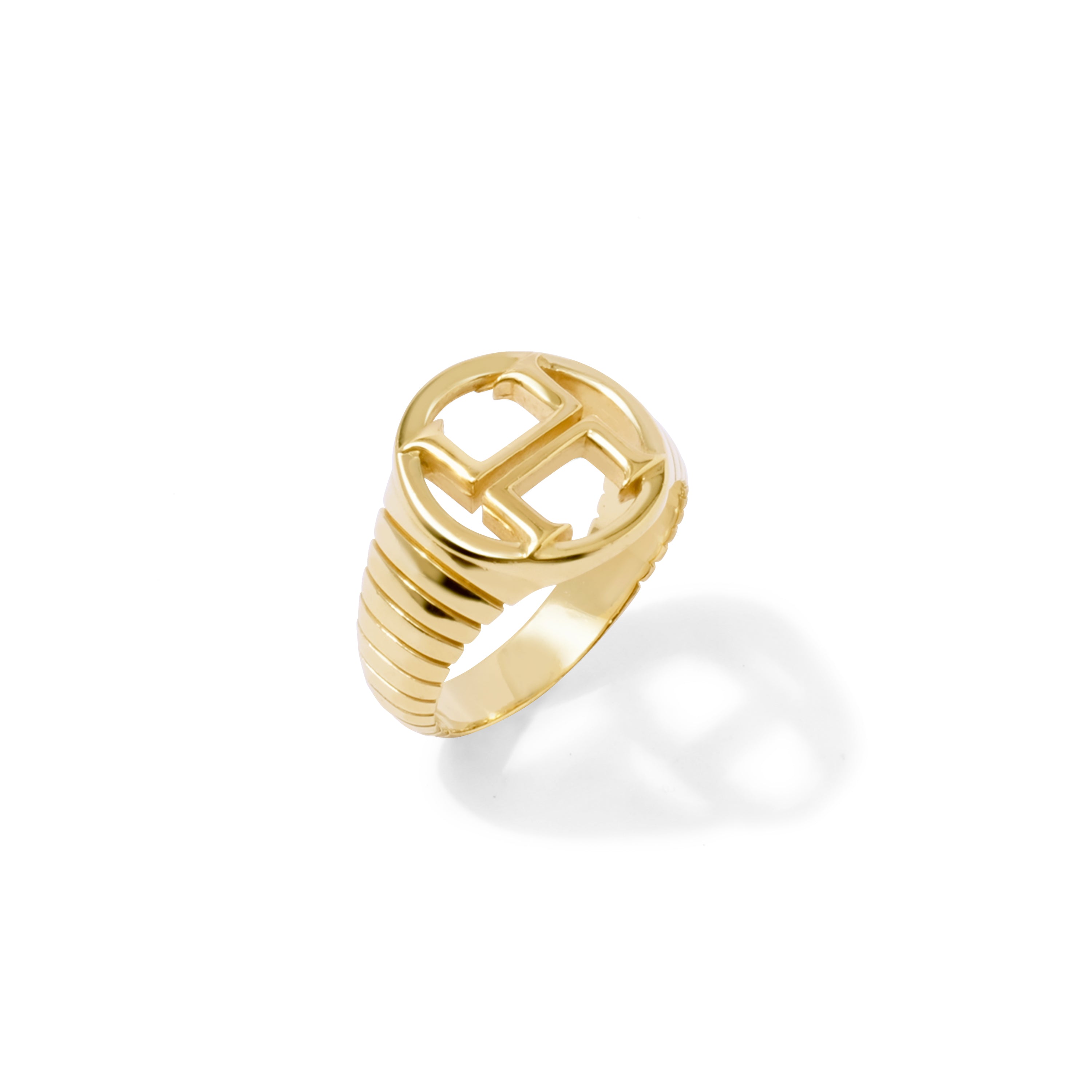 Honey & Hawk’s reimagined design on a timeless classic. Our signature signet ring is a statement unisex piece featuring refined ribbed design detailing and is completed with our bold and sleek Honey & Hawk H logo.